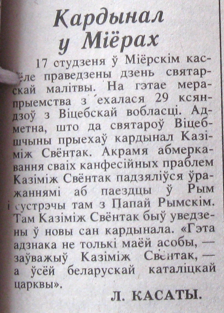 У гэты час па ўсёй Беларусі будуюцца новыя святыні. 1 чэрвеня 2002 года кардынал Казімір Свёнтэк асвяціў новы касцёл у Чавусах (Магілёўская вобл.), які быў пабудаваны пад кіраўніцтвам наша зямляка кс.Франца Рудзя.