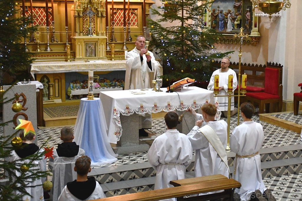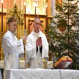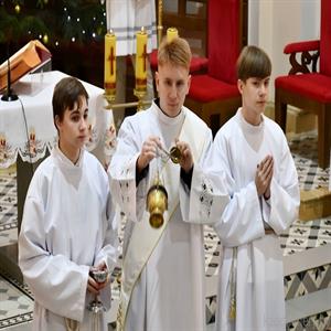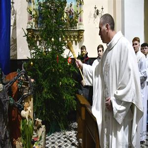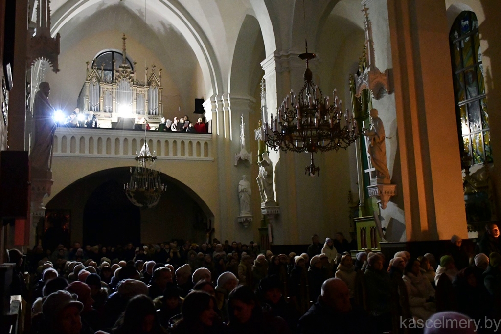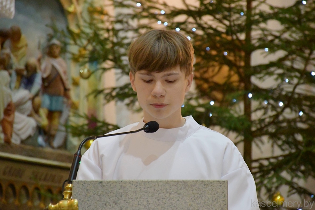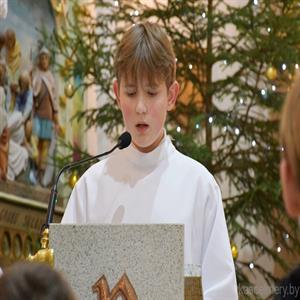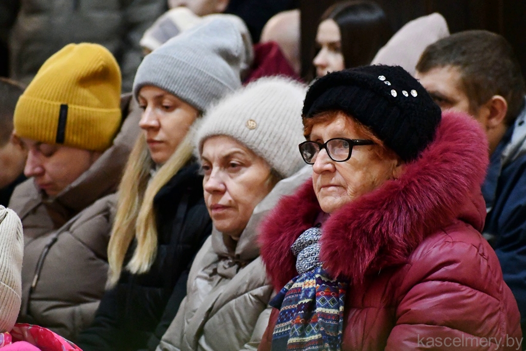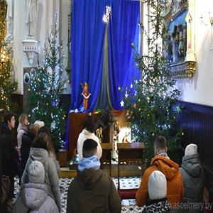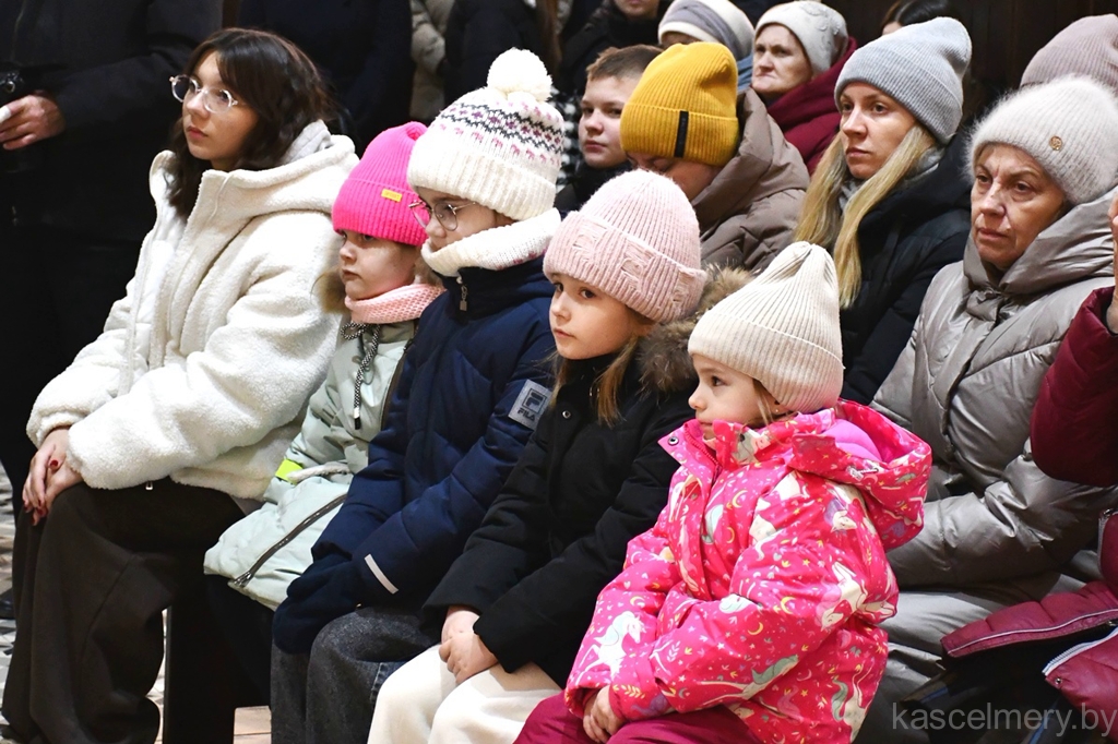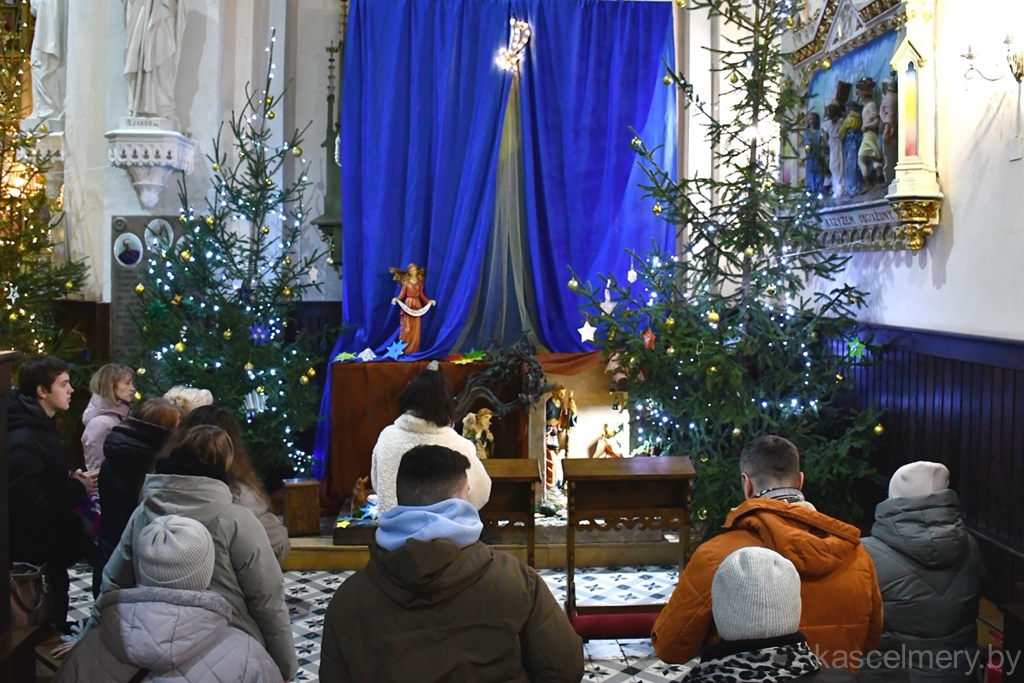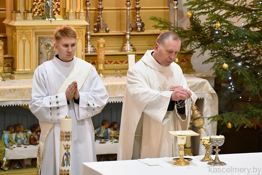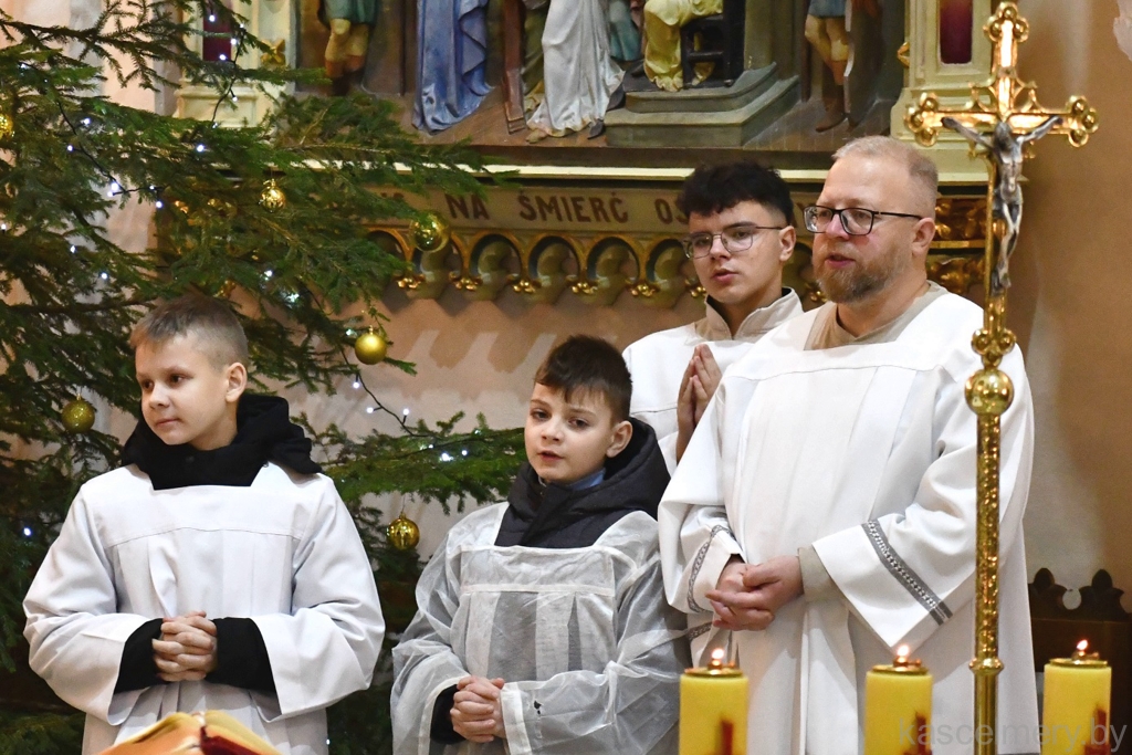 Падчас гаміліі пробашч парафіі ксёндз Андрэй Кулік заўважыў, што супольнай малітве ў касцёле папярэднічала вігілійная вячэра, якая традыцыйна збірае за сталом усю сям'ю, усіх тых, хто можа прыйсці ці прыехаць і падзяліць з намі радасць ад святкавання такой вялікай урачыстасці. Вігілійная вячэра, якая спалучае рэлігійныя і народныя традыцыі, служыць формай Евангелізацыі для дзяцей і моладзі. Мы прыносім сена і кладзём яго пад абрус, каб нагадаць, што Езус нарадзіўся ў беднай стайні і быў пакладзены Марыяй у яслі з сенам.