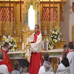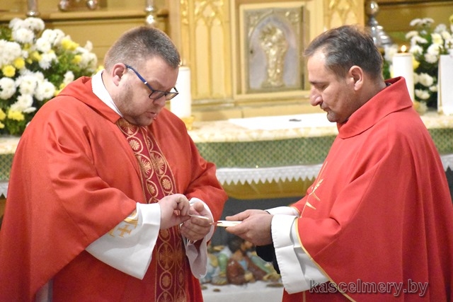 Напачатку святой Імшы пробашч парафіі ксёндз Андрэй Кулік прывітаў усіх прысутных, а затым звярнуўся да ксяндза Славаміра Самковіча з просьбай узначаліць Эўхарыстыю. Гамілію прамовіў ксёндз Вячаслаў Адамовіч.