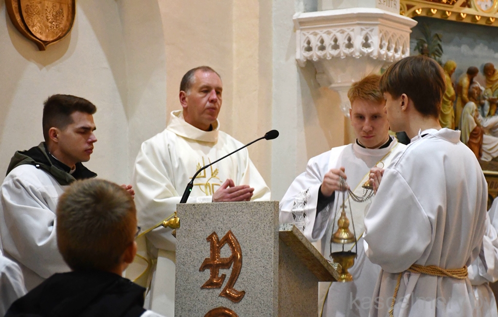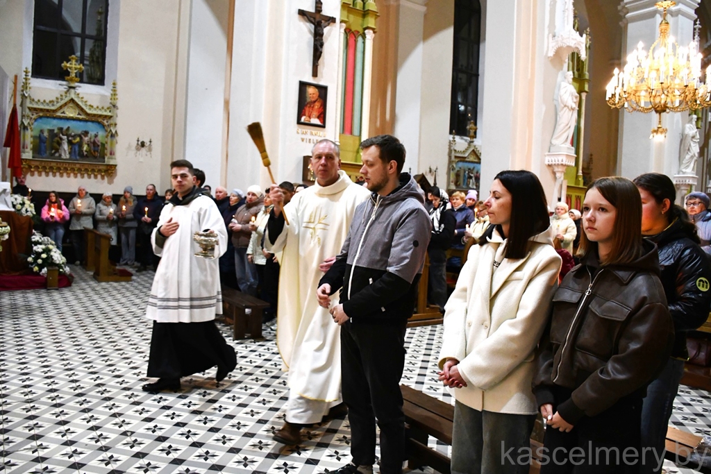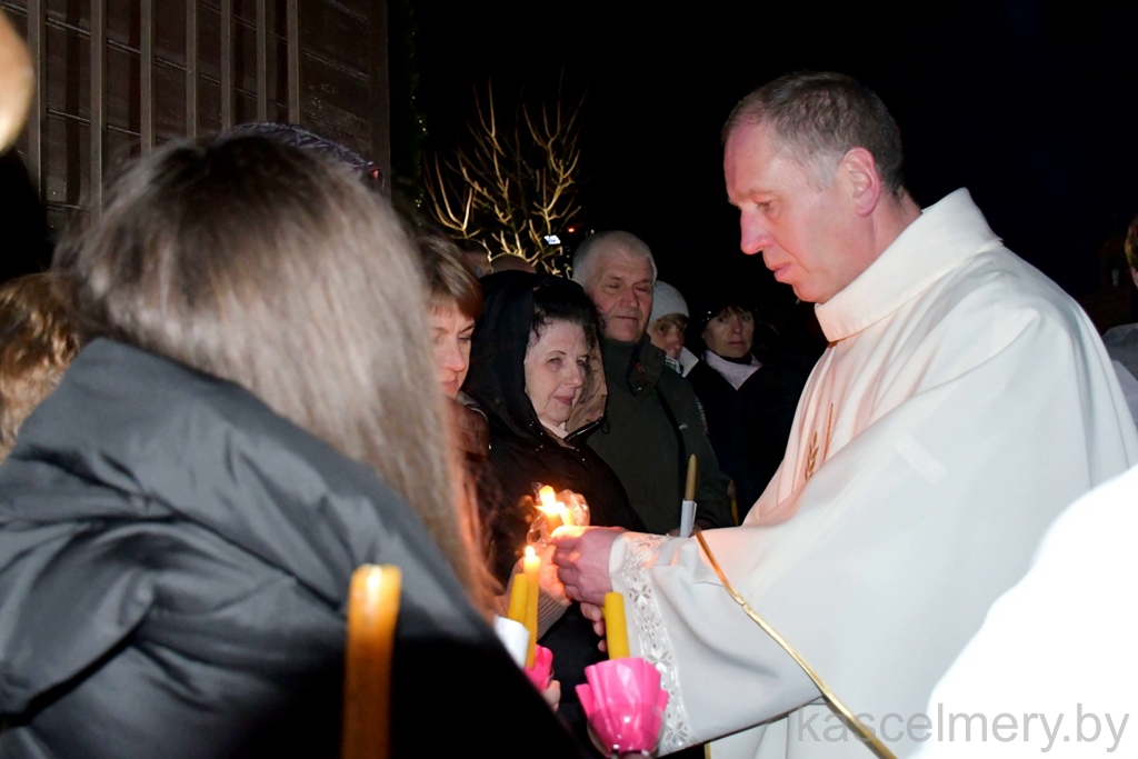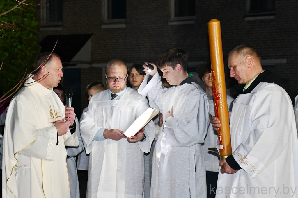 Падчас гаміліі пробашч парафіі ксёндз Андрэй Кулік адзначыў, што мы збіраемся сёння ў чарговы раз, каб урачыстай літургіяй Пасхальнай вігіліі распачаць святкаваць Уваскрасенне Хрыста. Успамін смерці і ўваскрасення Езуса, гэта не толькі рэканструкцыя гістарычнай падзеі звязанай з жыццём і смерцю аднаго чалавека, але, перш за ўсё, чарговая спроба зрабіць Хрыста часткай жыцця сучаснага свету, пераканаць саміх сябе, што нягледзячы на прагрэс і тэхналогіі, Езус не становіцца перажыткам мінулага, але, як кажа апостал Павел у пасланні да Габрэяў: "Езус Хрыстус той самы ўчора, сёння і навекі" (Гбр 13, 8).