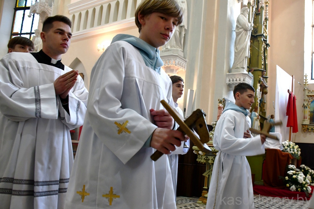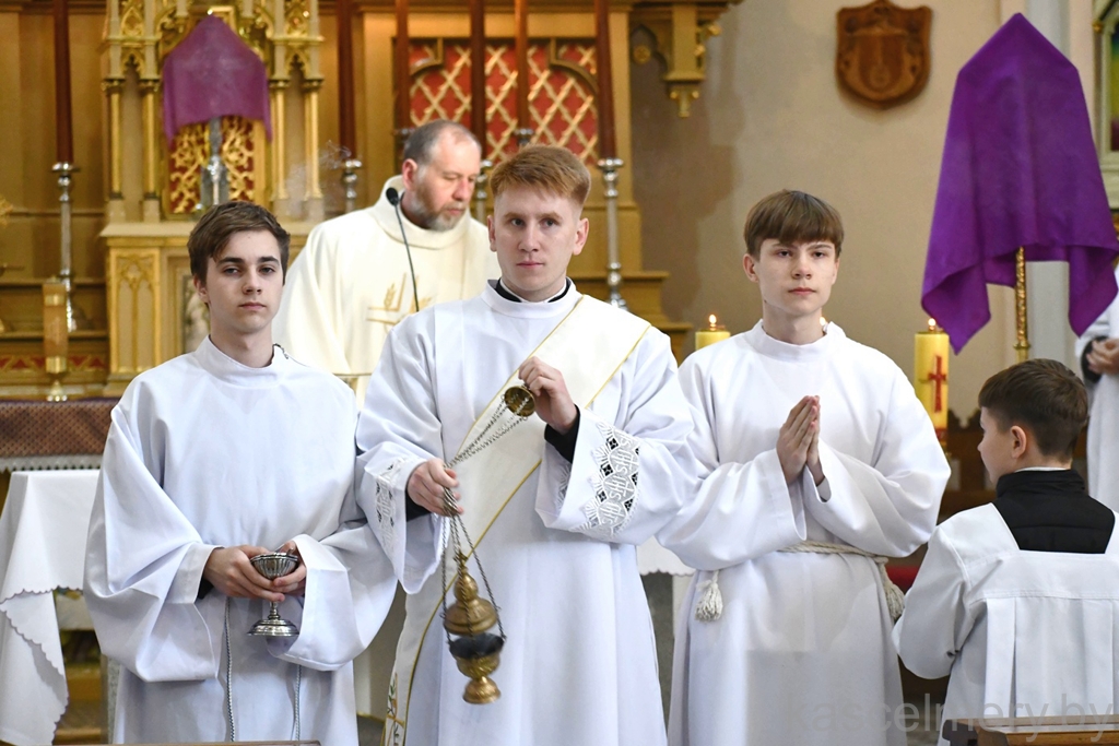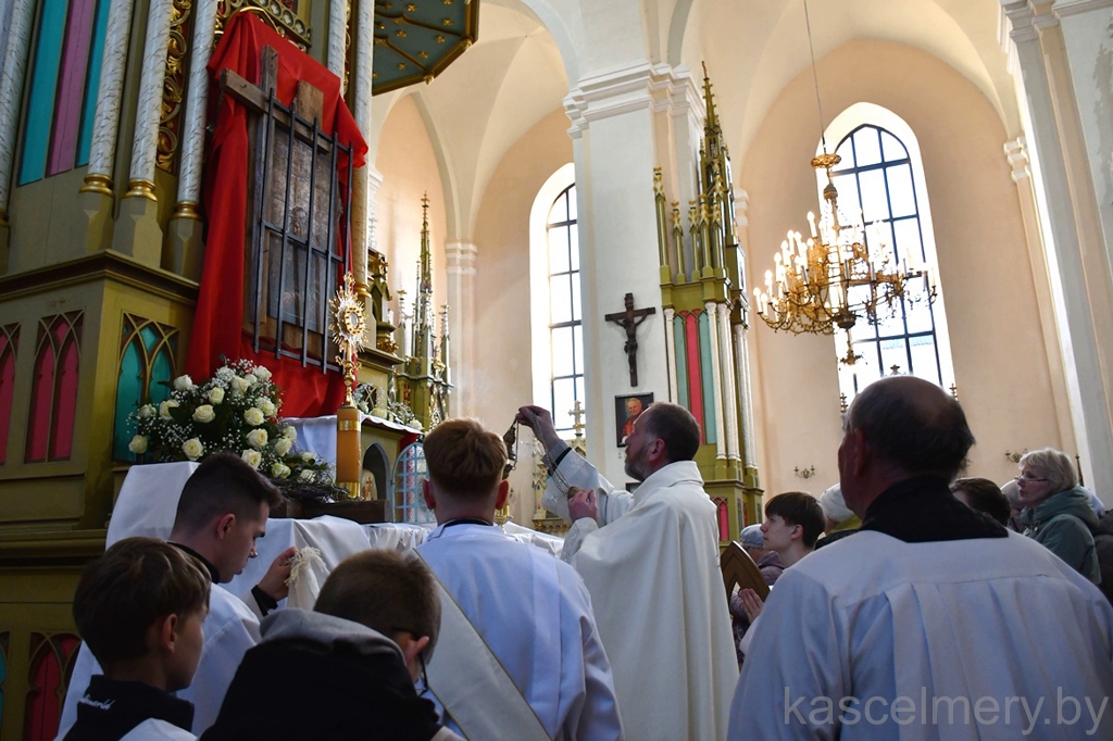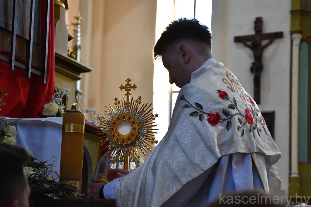 Падчас гаміліі дыякан Антон Тышко заўважыў, што ў Вялікі чацвер мы збіраемся, каб успомніць тры важныя падзеі нашай веры: устанаўленне Эўхарыстыі, устанаўленне святарства і запавет братняй любові. Евангелле паводле Яна, якое чытаем ў гэты вечар, засяроджваецца менавіта на трэцім аспекце — на ўчынках пакоры і любові, якімі Езус здзівіў сваіх вучняў, абмыўшы ім ногі перад Апошняй Вячэрай. У тыя часы абмыванне ног было справай найніжэйшых рабоў. Гэта быў абавязак, які даручаўся самым бедным слугам. А тут — сам Настаўнік і Пан становіцца на калені перад вучнямі. Гэтым учынкам Езус паказвае, што недастаткова любіць словамі — трэба любіць учынкамі. Недастаткова быць вялікім перад людзьмі — трэба быць слугою для ўсіх.