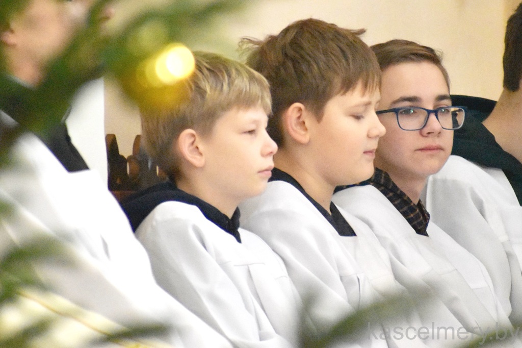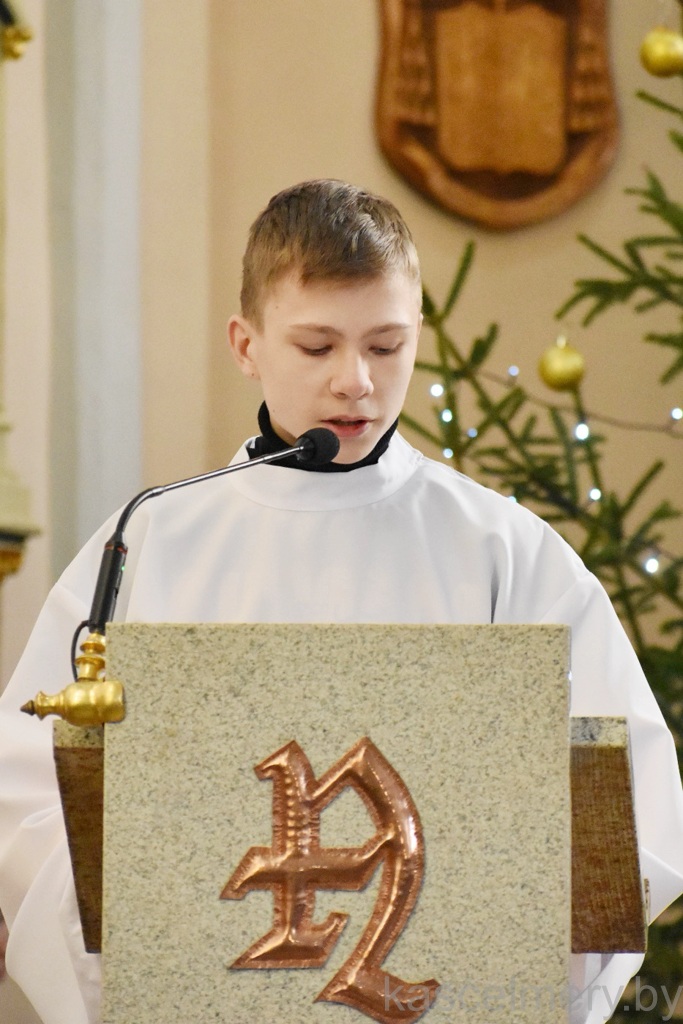 Звяртаючыся з душпастырскай навукай да вернікаў вікарый ксёндз Алег Зямчонак заўважыў, што сёння мы перажываем вялікую і важную ўрачыстасць для ўсяго Касцёла — Аб'яўленне Пана, калі Сын Божы аб'яўляецца не толькі ізраільскаму народу але і ўсяму светую. Мы бачым гісторыю першых пілігрымаў, якія ішлі да Бэтлеемскіх ясляў. Трох каралёў з Усходу, якія прыйшлі пакланіцца Пану і сэрцам дакрануцца да Сына Божага. У Евангеллі мы не знойдзем ніводнага слова, якое яны прамовілі. Мы толькі ведаем, што яны прынеслі дары: золата, кадзіла і мірру — сімвалы каралеўскай улады. Як дзве тысячы гадоў таму назад, Пан Бог дакрануўся да сэрца мудрацоў, так і сёння дакранаецца да кожнага сэрца, якое напоўнена пакорай і любоўю.