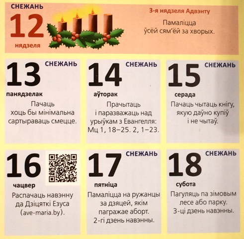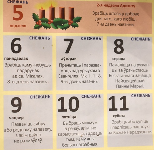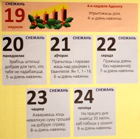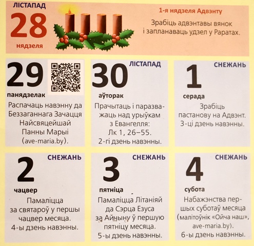 Традыцыйна падчас Адвэнту ў панядзелак, сераду і пятніцу а 7-ай гадзіне ў нашай святыні будуць цэлебравацца раратнія святыя Імшы, на якія сардэчна запрашаем дзяцей і дарослых. На свята Божага Нараджэння, як і ў мінулым годзе, плануецца арганізаваць выставу дзіцячых малюнкаў і стаенак "Хрыстос нарадзіўся!". Заахвочваем дзяцей да ўдзелу ў выставе.