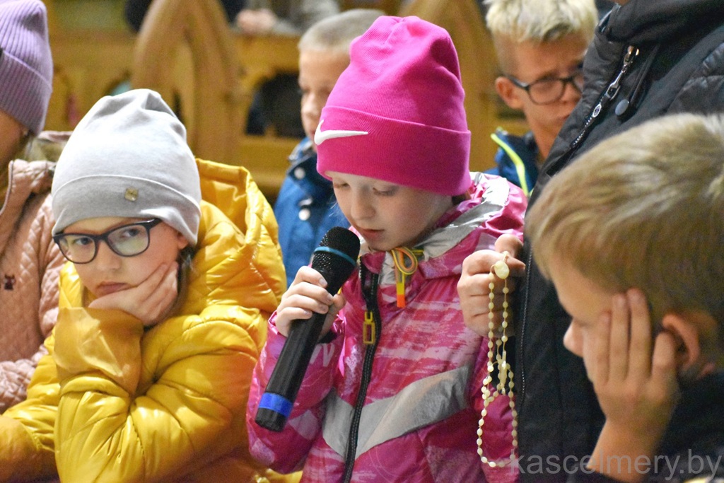 З 2021 года ў сусветнай малітоўнай акцыі прымаюць удзел дзеці нашай парафіі. Сёлета малітоўнае чуванне адбылося перад святой Імшой а 18-ай гадзіне. Пад кіраўніцтвам катэхеткі Наталлі Гарноўскай, дзеці перад Найсвяцейшым Сакрамантам памаліліся аб міры і еднасці ва ўсім свеце, а таксама за нашу краіну, парафію, сем'і.