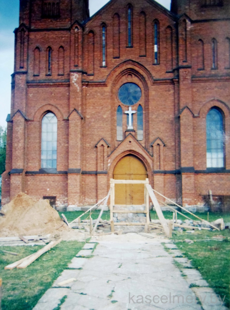 Працы зацягнуліся амаль на два гады. Адна з прычын — цяжкасці з разлікам. Парафіяне ахвяравалі грошы, але кошт помніка пастаянна ўзрастаў, бо была моцная інфляцыя. Адлівалі фігуру з бронзы на Мінскім трактарным заводзе. У верасні 1999 года скульптура Маці Божай масай 3 тоны і вышынёй 4,3 метры нарэшце прыбыла ў Мёры.