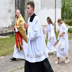 Урачытая Літургія распачалася а 12-ай гадзіне. У прывітальным слове, звяртаючыся да прысутных, пробашч парафіі ксёндз Ян Пугачоў адзначыў, што нас зноў збірае Езус Хрыстус дзеля перамянення нашага жыцця, каб адарыць неабходнымі цнотамі і ўмацаваць праз святыя сакраманты.
