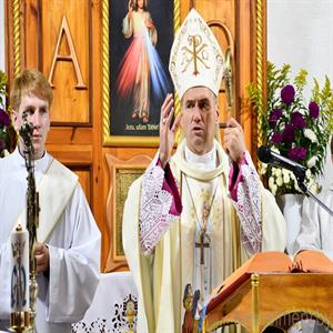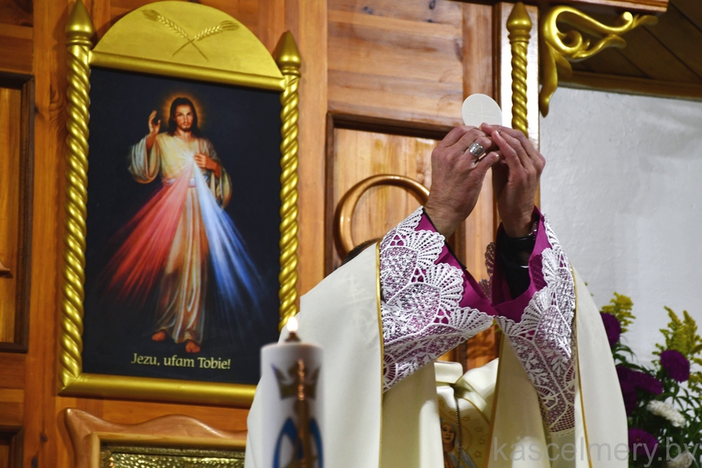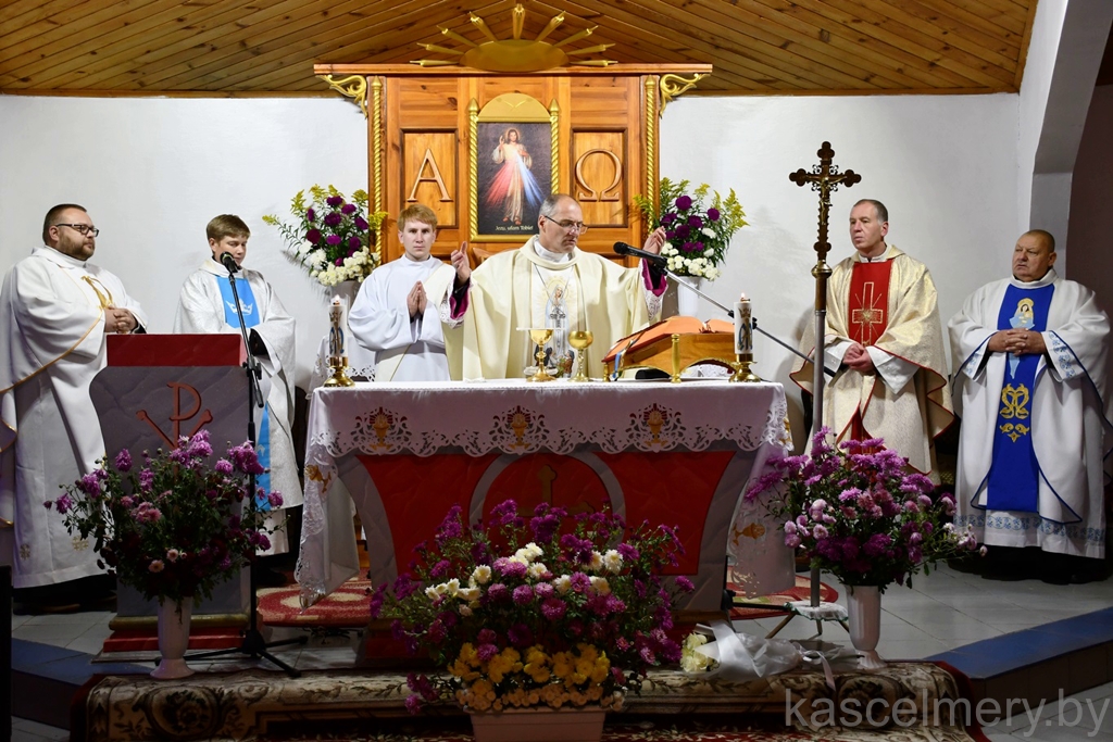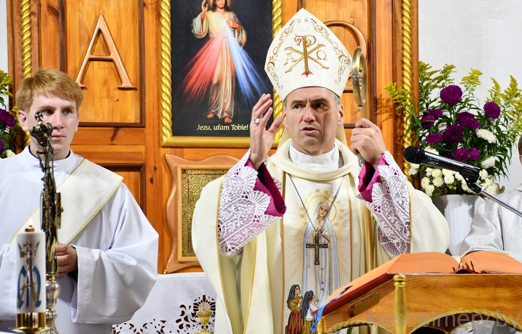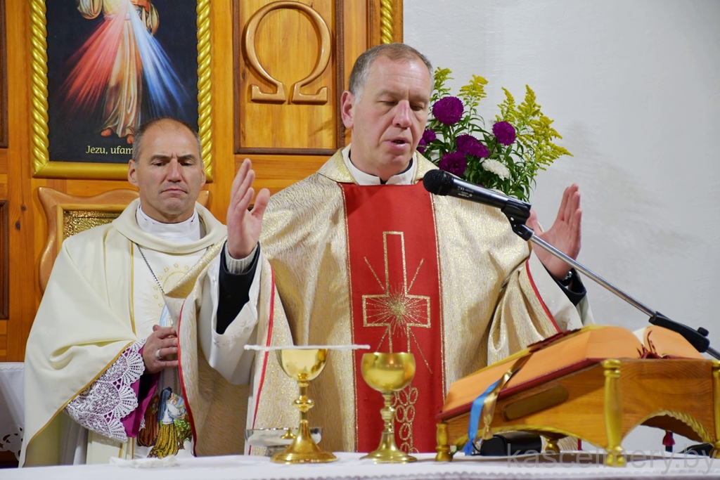 "Велічны Бог у сваёй святыні, Бог Ізраэля. Ён дае сілу і моц свайму народу, Бог Благаслаўлёны" — звярнуўся да прысутных словамі Псальма біскуп Алег Буткевіч (пар. Пс 68(67), 36). Іерарх адзначыў, што знакам веры людзей, якія жывуць на той ці іншай тэрыторыі з'яўляецца святыня. Месца, дзе складаецца Эўхарыстычная ахвяра. Месца сустрэчы чалавека з Богам. І, як сведчыць Святое Пісанне, — гэта месца з'яўляецца знакам Божага благаслаўлення. Бо ўсё што мы робім і да чаго імкнёмся, без Божай апекі і Божага благаслаўлення застаецца бясплённы. Таму мы сёння дзякуем Богу і ўзгадваем тых людзей, без якіх не было б гэтай святыні.