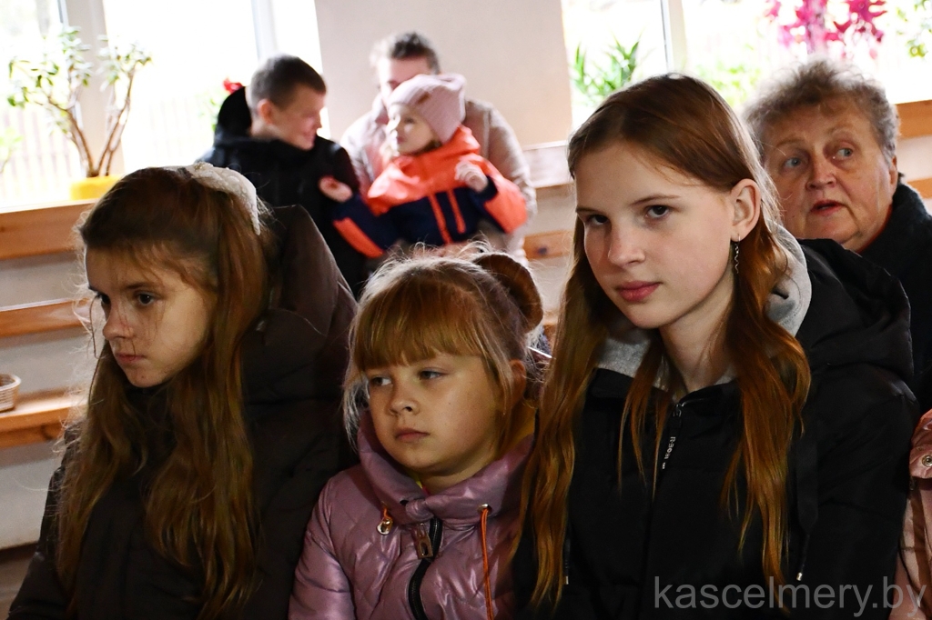 А 15-ай гадзіне распачалася святая Імша, якую ўзначаліў біскуп Алег. У Эўхарыстыі бралі ўдзел дэкан Мёрскі ксёндз Андрэй Кулік, айцец Чэслаў Курэчка МІС з Росіцы і ксёндз Аляксандр Грыцкевіч з Верхнядзвінска.