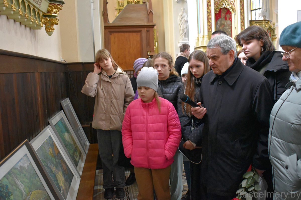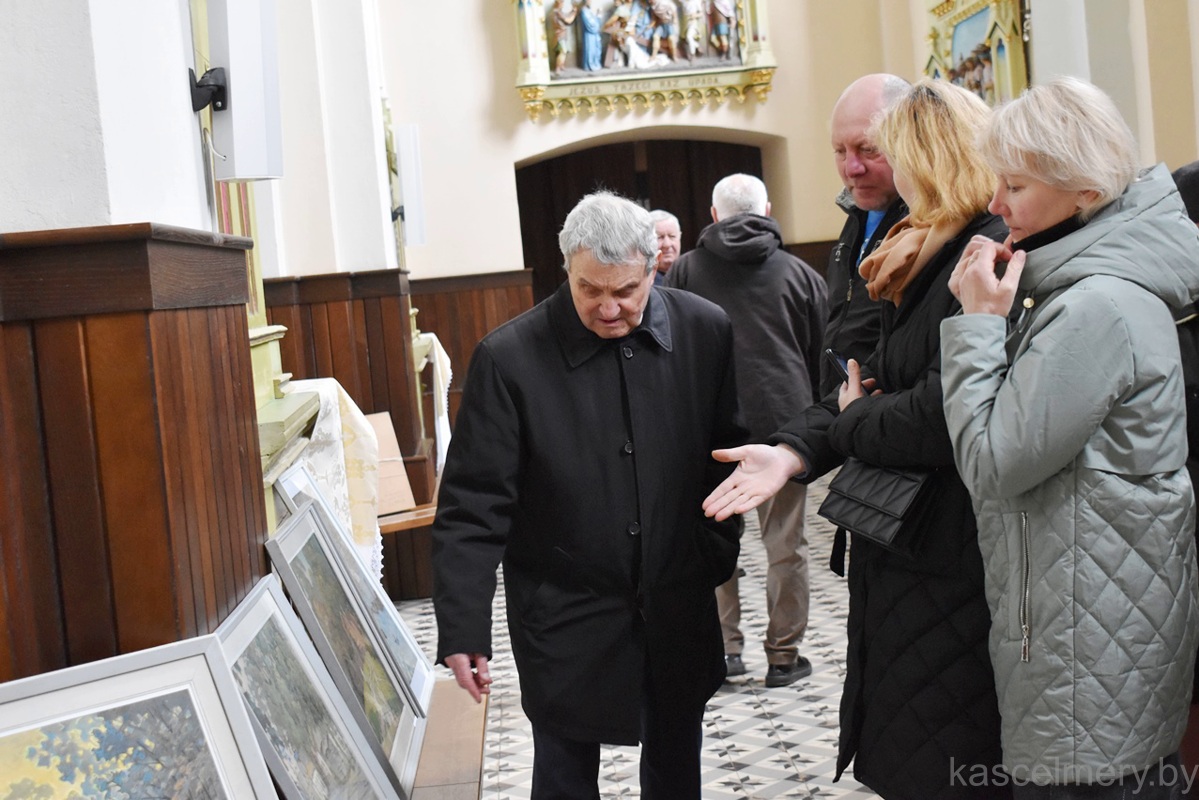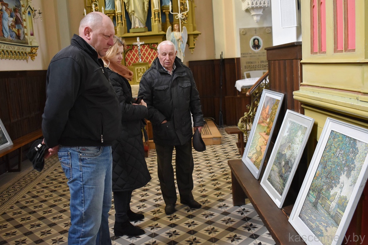 Перад урачыстай імпрэзай у бакавой наве касцёла была зладжана выстава, на якую завіталі родныя і знаёмыя аўтара, а таксама тыя, хто цікавіцца мастацтвам. Бліжэй пазнаёміцца з вядомым земляком і яго творчасцю прыйшлі таксама навучэнцы раённай школы мастацтваў, якія з непадробным захапленнем вывучалі творы майстра.