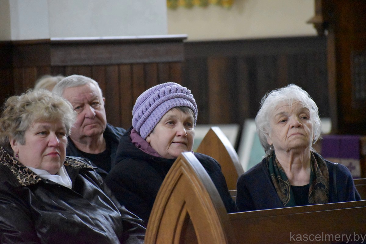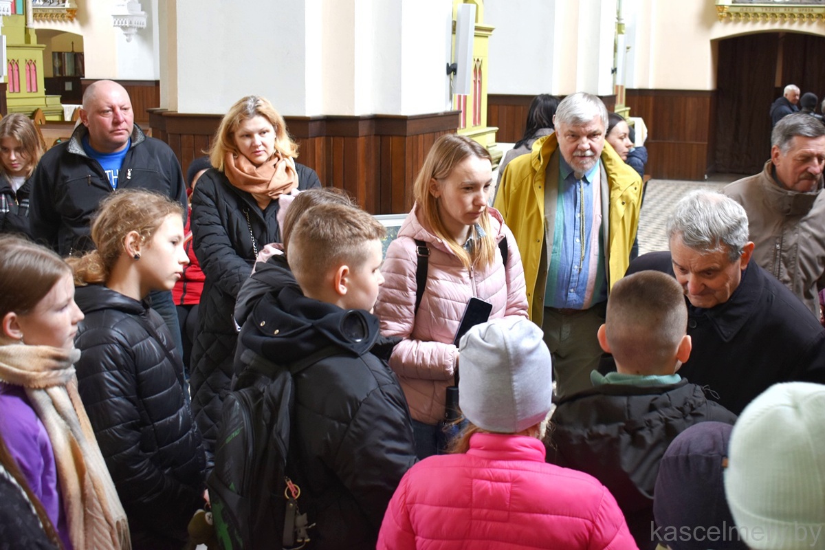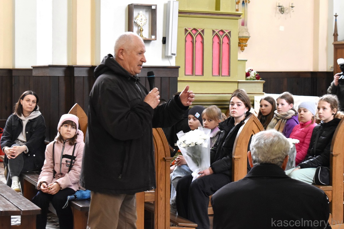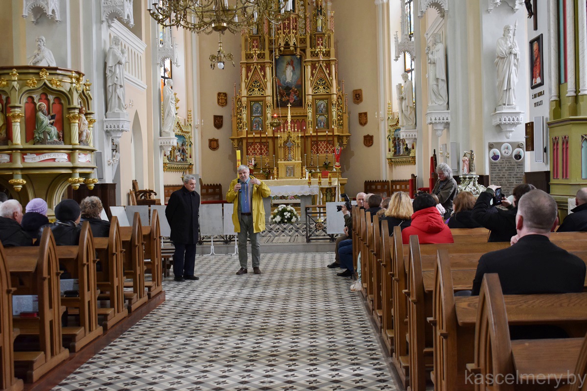 Перад урачыстай імпрэзай у бакавой наве касцёла была зладжана выстава, на якую завіталі родныя і знаёмыя аўтара, а таксама тыя, хто цікавіцца мастацтвам. Бліжэй пазнаёміцца з вядомым земляком і яго творчасцю прыйшлі таксама навучэнцы раённай школы мастацтваў, якія з непадробным захапленнем вывучалі творы майстра.