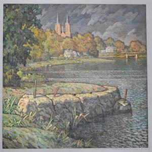 Карціны былі дастаўлены з Віцебска пры падтрымцы Віцебскага дзяржаўнага ўніверсітэта імя П.М.Машэрава, у якім Вячаслаў Шамшур працуе з 1970 года. Работы, напісаныя ў тэхніцы пастэль, мастак стварыў на працягу 1997-2020 гг.. На палотнах касцёл, набярэжная, старыя міёрскія вуліцы, а таксама вясковыя пейзажы, балота Ельня, Друя-Педруя і нават Кракаў.