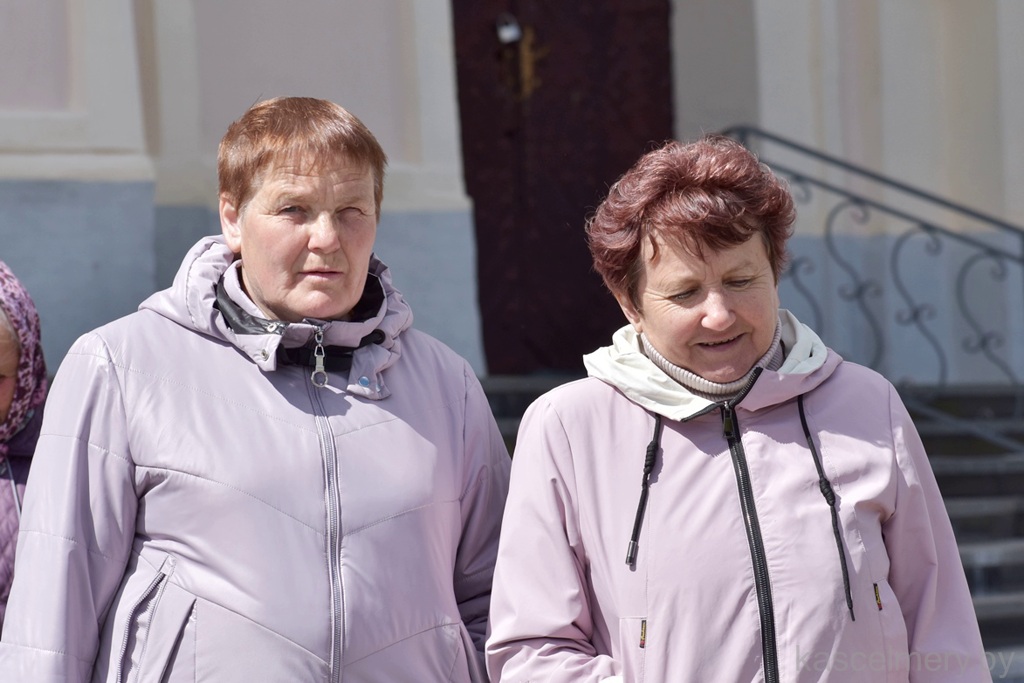 У дарогу вырушылі раніцай. Уладкаваўшыся ў аўтобусе, распачалі ружанцовую малітву і не заўважылі, як праз дзве гадзіны былі ўжо на месцы. Да пачатку набажэнстваў быў яшчэ час, таму вернікі мелі магчымасць пазнаёміцца з ходам прац па аднаўленні Будслаўскай святыні, а таксама памаліцца перад абразом Маці Божай і адмысловымі крыжамі, якія зробленыя з абгарэлых пасля пажару бэлек перакрыццяў касцёла.