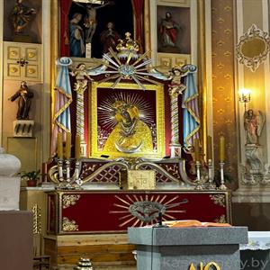 Костёл Святой Троицы, изысканный и величественный, является настоящим украшением города. Мы любуемся белоснежным храмом, образцом позднего барокко с элементами «виленского» стиля, характерного для храмовой архитектуры Беларуси конца 18 века. Настоятелем храма сейчас является Николай Тихонович. После Святой Мессы мы любуемся интерьером святыни. Восхищает центральный алтарь с иконой Коронования Девы Марии, изображение Бога Отца в облаках, икона Матери Божьей, держащей Младенца Иисуса на руках и указывающей на него как на источник спасения человечества. В боковых алтарях – уникальные иконы и скульптуры 18 века: икона «Иосиф с ребёнком» и икона Иисуса Милосердного. В часовне Богоматери Подхорной мы помолились у чудотворной иконы, дарующей исцеление и в наше время. Хранятся здесь и мощи сестёр – назаретанок, которые летом 1943 года совершили подвиг во имя Бога и любви к людям. Они были расстреляны оккупантами в Новогрудке вместо 120 жителей города.