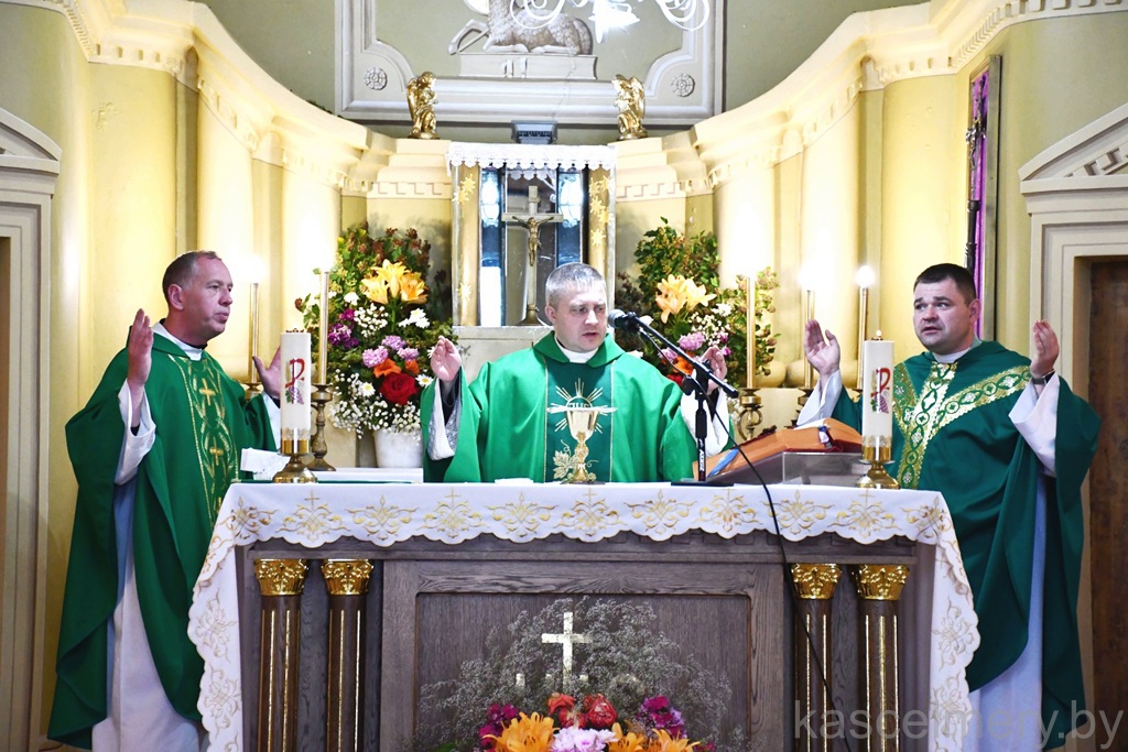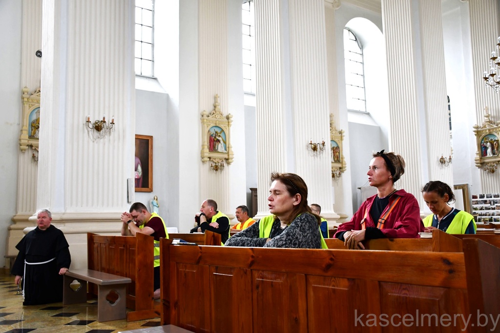 Пробашч будслаўскай парафіі ксёндз Дзмітрый Дубовік прывітаў таксама мёрскіх пілігрымаў і, акрапіўшы святой вадой, запрасіў у святыню.