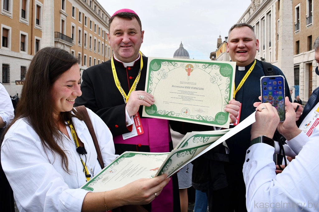 Пілігрымаў, якія прыбылі ў падуанскую юбілейную святыню – Базыліку Святога Антонія, чакаў неспадзяваны і вельмі прыемны сюрпрыз. Прыняць удзел у Эўхарыстыі і памаліцца разам з пілігрымамі прыбылі Мітрапаліт Мінска-Магілёўскай архідыяцэзіі арцыбіскуп Юзаф Станеўскі і Генеральны вікарый архідыяцэзіі біскуп Аляксандр Яшэўскі SDB, якія знаходзіліся ў Рыме з нагоды святкавання юбілейнага года.