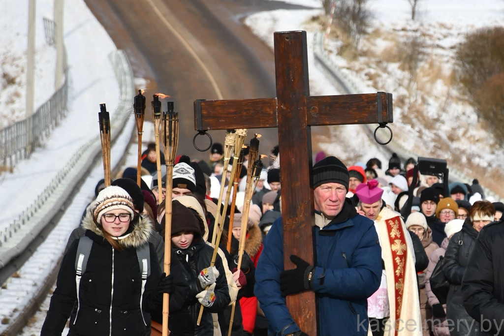 Пасля Эўхарыстыі адбылася працэсія на месца мучаніцтва. Наперадзе мужчыны неслі вялізны крыж, за імі ішлі моладзь з паходнямі, святары і вернікі з запаленымі свечкамі ў руках. Узносячы словы Літаніі да ўсіх святых, усе разам прасілі аб заступніцтве для сябе і сваіх блізкіх.