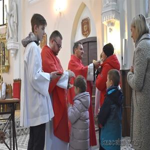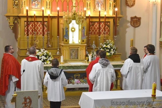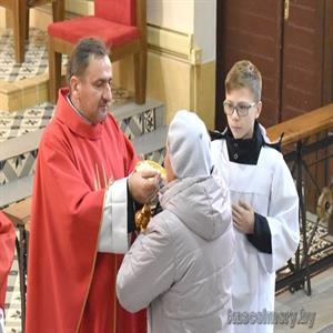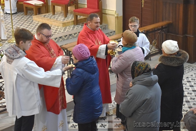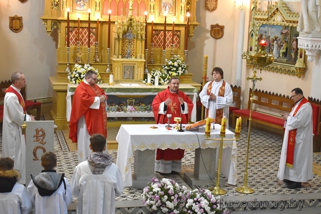 Напачатку святой Імшы пробашч парафіі ксёндз Андрэй Кулік прывітаў усіх прысутных, а затым звярнуўся да ксяндза Славаміра Самковіча з просьбай узначаліць Эўхарыстыю. Гамілію прамовіў ксёндз Вячаслаў Адамовіч.