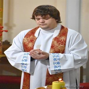 Сваё казанне святар распачаў з біяграфіі св.Язафата Кунцэвіча, спыніўшыся на асноўных момантах жыцця біскупа і мучаніка. Далей ксёндз Вячаслаў адзначыў: "Касцёл навучае, што святыя з'яўляюцца для нас прыкладам. Якім прыкладам можа быць для нас святы Язафат сёння, мучанік, прапаведнік, а перад усім веруючы чалавек? Менавіта прыкладам інтузіяста веры. Ярка гарэць сваёй верай і сваёй любоўю да Пана Бога, нягледзячы не на што старанна і аданна яму служыць. Бог ад нас не патрабуе, каб мы панеслі мучаніцкую смерць, хоць хрысціяне ва ўсім свеце церпяць і сёння праліваюць кроў. Але канкрэтна нас Пан Бог не вымагае да такога сведчання. Нам з вамі пашанцавала, ад нас патрабуюцца простыя рэчы — быць вернымі Богу ў малым. Выконваць тое, што нам належыць — дзесяць Божых прыказанняў, а таксама рэгулярна спавядацца, прымаць святую Камунію, імкнуцца жыць у стане асвятальнай ласкі і дзень святы святкаваць. У гэтых малых рэчах ёсць наша з вамі святасць."