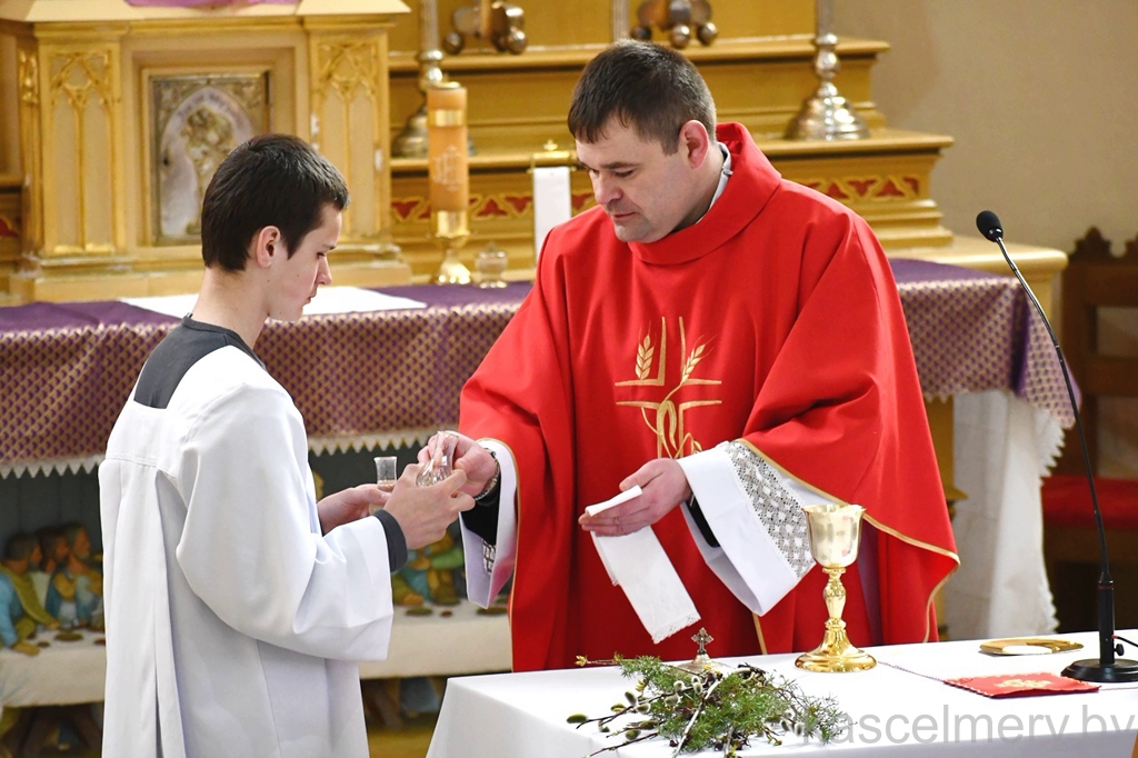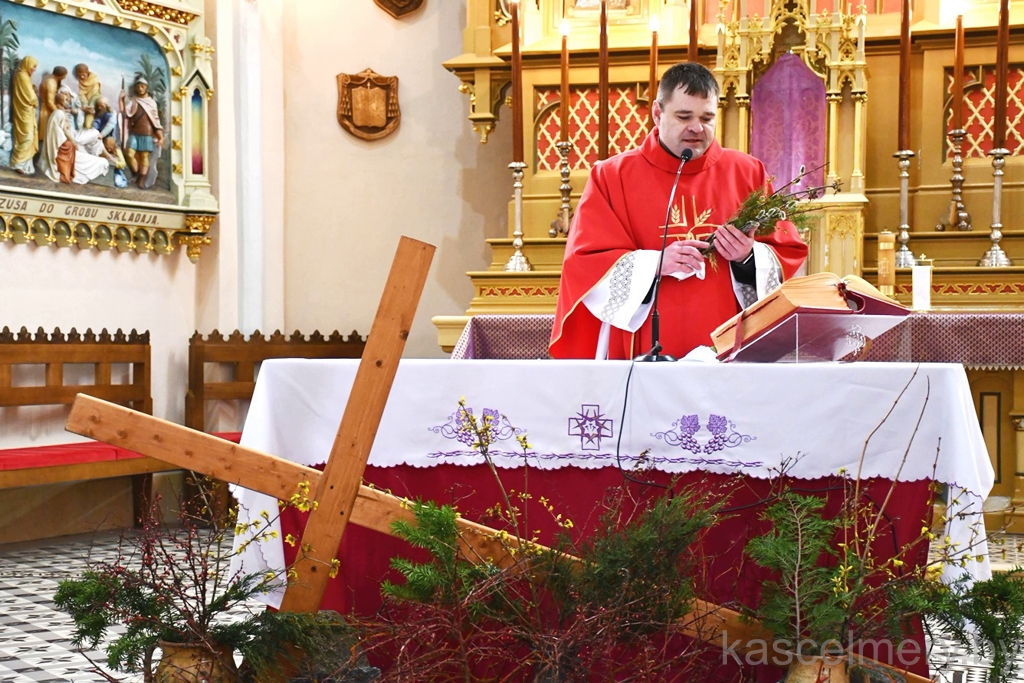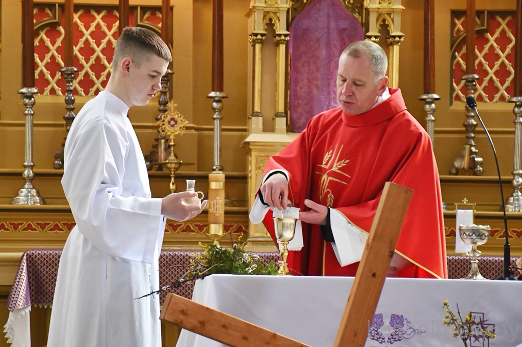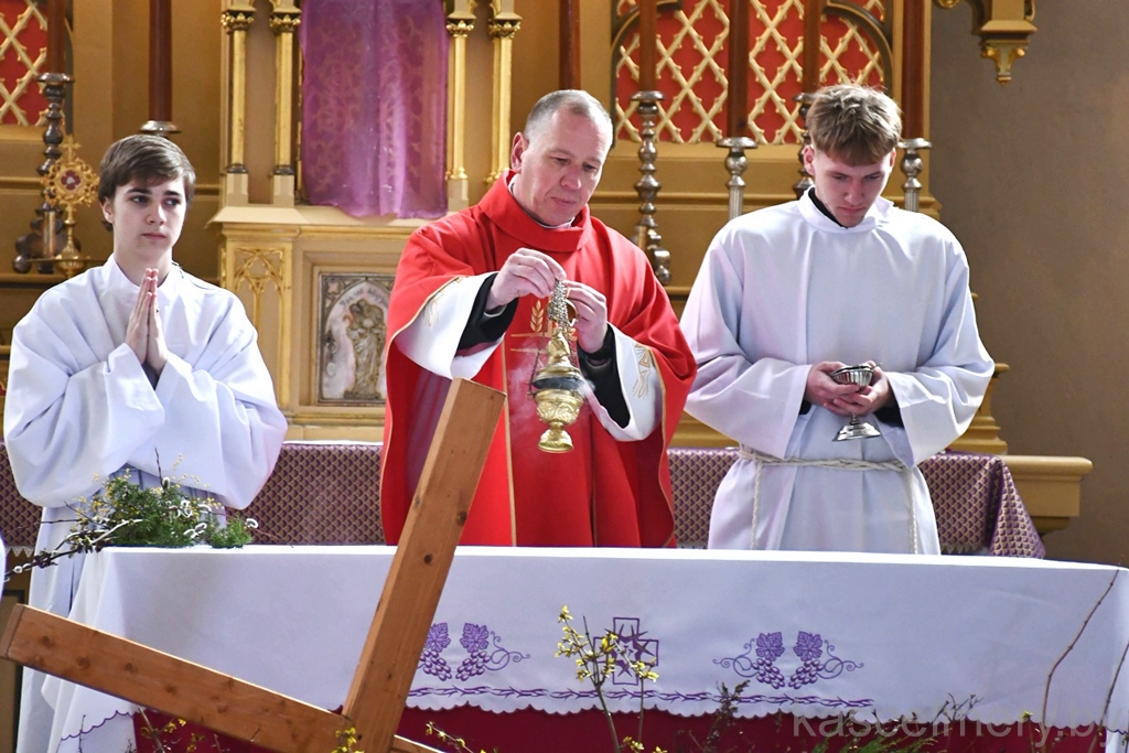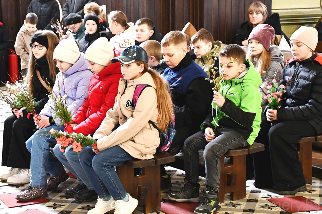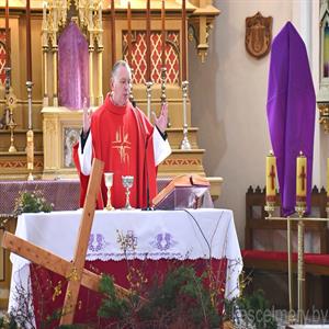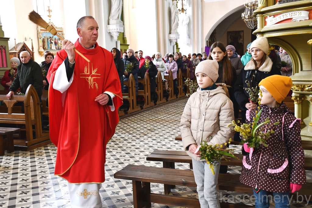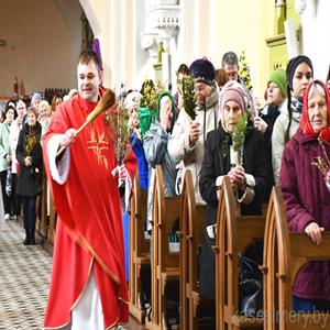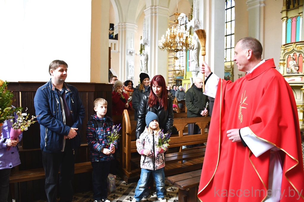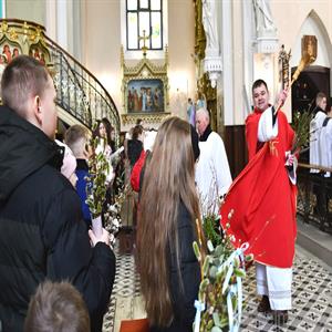 Пробашч парафіі ксёндз Андрэй Кулік звярнуў увагу на ўрачысты ўезд Езуса Хрыста ў Ерузалем. Святар падкрэсліў, што для гэтай мэты Езус, які ніколі раней не падарожнічаў конна, выбраў для сябе жывёліну, якая здаўна лічылася сімвалам супакою. Праяўляючы пакору, а не трыўмф караля, Ён такім чынам споўніў прароцтвы Старога Запавету. Сёння Езус выконвае дзве функцыі: Ён з'яўляецца каралём — гэты надпіс знаходзіцца на крыжы: Езус Назаранін Кароль Юдэйскі, а таксама з'яўляецца святаром, які складае сябе ў ахвяру. "Ідучы з вербамі па вуліцы ў касцёл ці з касцёла, мы сёння даём сведчанне веры, што з'яўляемся католікамі. Няхай гэтае сведчанне будзе штодзённым і плённым" — пажадаў на заканчэнне святар.