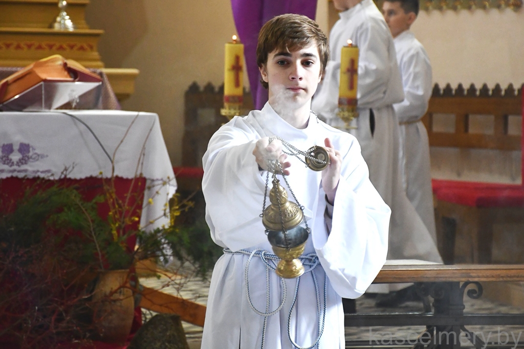 Аб важнасці Пальмовай нядзелі і Вялікага тыдня ў Літургіі Касцёла і для кожнага верніка асабіста казалі святары падчас гаміліі. Ксёндз Алег Зямчонак адзначыў, што мы прыходзім у святыню з вербамі, каб уславіць Езуса Хрыста. Вельмі важна памятаць, што ў той момант, калі мы радасна ўздымаем вербы ўгору і прамаўляем словы: "Гасанна, Сыну Давідаву! Бласлаўлёны той, хто прыходзіць у Імя Пана”, — Езус бярэ крыж, крыж нашых грахоў і занядбанняў. Святар заахвоціў кожнага задумацца над станам сваёй душы і зрабіць усё магчымае, пакуль яшчэ ёсць час, каб з чыстым сэрцам сустрэць Змёртвыхпаўсталага Хрыста.