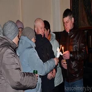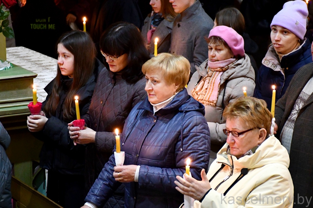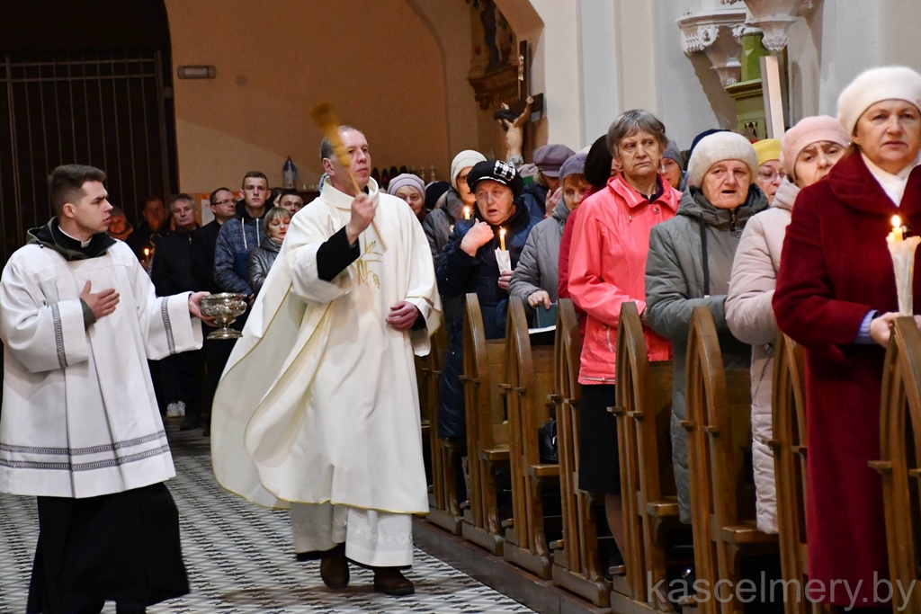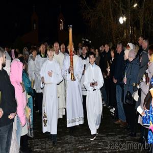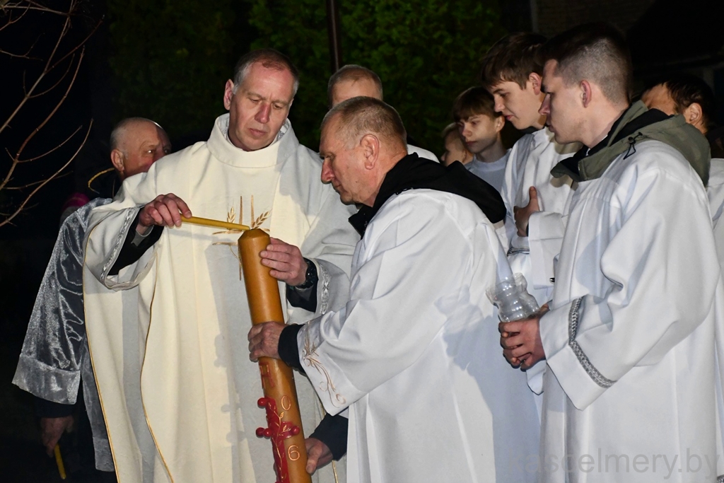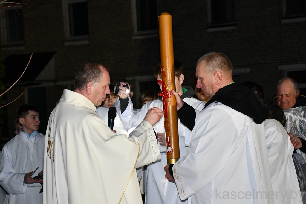 Падчас гаміліі пробашч парафіі ксёндз Андрэй Кулік адзначыў, што мы збіраемся сёння ў чарговы раз, каб урачыстай літургіяй Пасхальнай вігіліі распачаць святкаваць Уваскрасенне Хрыста. Успамін смерці і ўваскрасення Езуса, гэта не толькі рэканструкцыя гістарычнай падзеі звязанай з жыццём і смерцю аднаго чалавека, але, перш за ўсё, чарговая спроба зрабіць Хрыста часткай жыцця сучаснага свету, пераканаць саміх сябе, што нягледзячы на прагрэс і тэхналогіі, Езус не становіцца перажыткам мінулага, але, як кажа апостал Павел у пасланні да Габрэяў: "Езус Хрыстус той самы ўчора, сёння і навекі" (Гбр 13, 8).