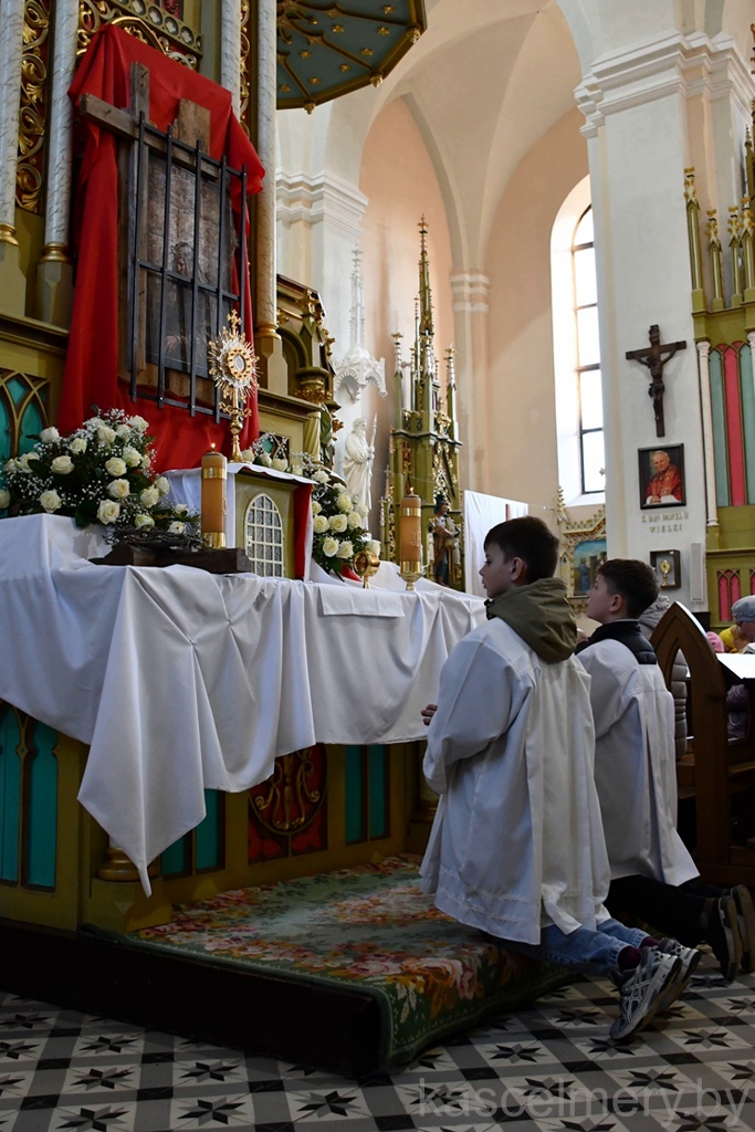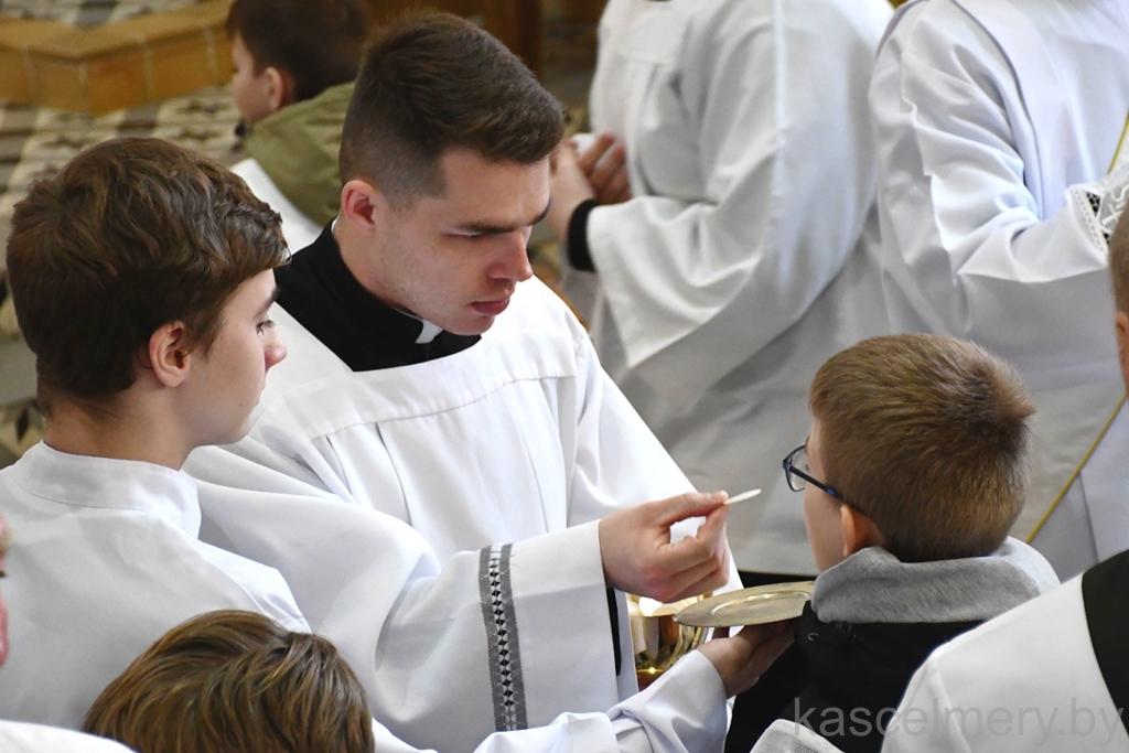Падчас гаміліі дыякан Антон Тышко заўважыў, што ў Вялікі чацвер мы збіраемся, каб успомніць тры важныя падзеі нашай веры: устанаўленне Эўхарыстыі, устанаўленне святарства і запавет братняй любові. Евангелле паводле Яна, якое чытаем ў гэты вечар, засяроджваецца менавіта на трэцім аспекце — на ўчынках пакоры і любові, якімі Езус здзівіў сваіх вучняў, абмыўшы ім ногі перад Апошняй Вячэрай. У тыя часы абмыванне ног было справай найніжэйшых рабоў. Гэта быў абавязак, які даручаўся самым бедным слугам. А тут — сам Настаўнік і Пан становіцца на калені перад вучнямі. Гэтым учынкам Езус паказвае, што недастаткова любіць словамі — трэба любіць учынкамі. Недастаткова быць вялікім перад людзьмі — трэба быць слугою для ўсіх.