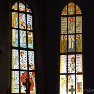У Беларусі вітражы знаёмыя з XV-XVI ст. (у капліцах фарнага касцёлу ў Наваградку, касцёле бернардзінцаў у Гродне). У свой час вітражы ўпрыгожвалі і наш касцёл, аднак у канцы 80-х гадоў мінулага стагоддзя былі страчаныя пры замене пашкоджаных вокнаў.